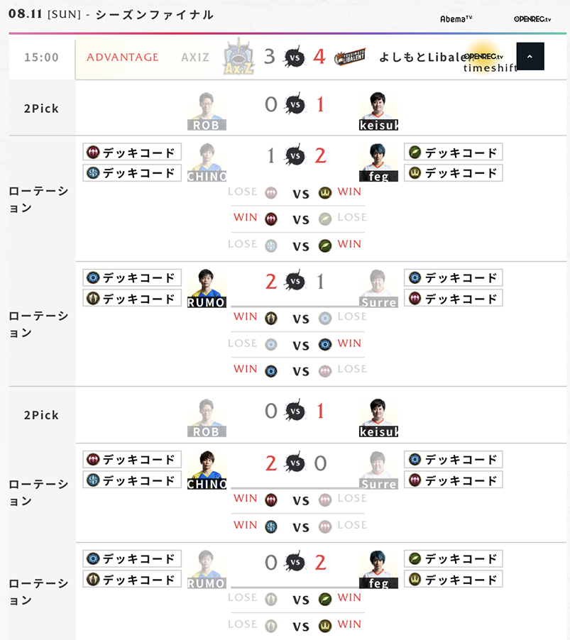 この勝利で「AXIZ」はチームスコアを3-3の五分に戻し、お互いに《勝てばシーズン優勝》という状況で次の最終試合に運命を繋ぎました。