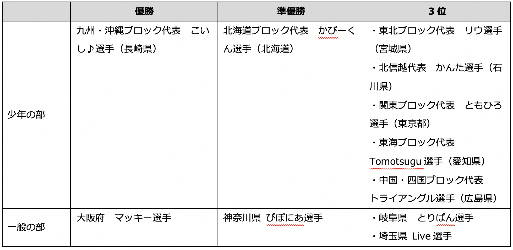 ▲小学生の部優勝:九州・沖縄ブロック代表 こいし♪選手(長崎県)