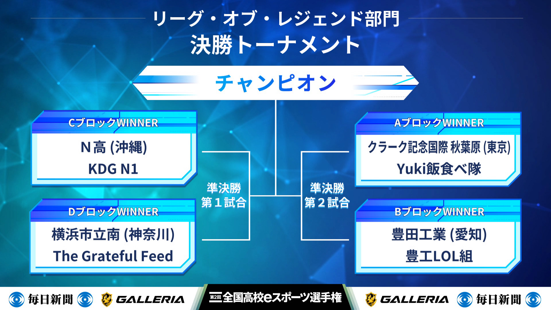 株式会社毎日新聞社と株式会社サードウェーブによって開催される「全国高校eスポーツ選手権」、その第二回大会の決勝大会は間近に迫っています。本大会はロケットリーグ部門とリーグ・オブ・レジェンド(以下LoL)部門に別れており、11/23~24にかけてはLoL部門の予選大会が実施されていました。結果、オフラインの決勝に進出する4チームが決定し、両部門ともに本番となる決勝大会を待つのみとなりました。