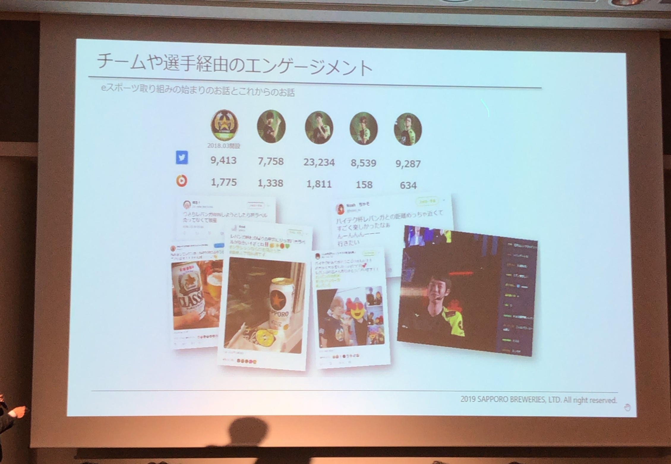 二人目の登壇者はサッポロビール株式会社、マーケティング開発部の福吉敬氏。自らを根っからの「ギーク」と紹介した福吉氏ですが、サッポロビールのeスポーツ参入への立役者でもあります。福吉氏はもともと独自のルートでeスポーツへの参入を画策していましたが、そこにちょうどスポンサーしていたバスケットボールBリーグの「レバンガ北海道」から新たに発足するeスポーツチームへのスポンサー依頼が。渡りに船ということでeスポーツ事業へと参入をしたようです。