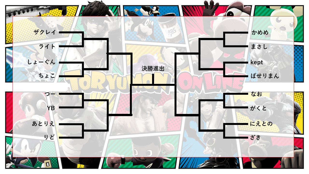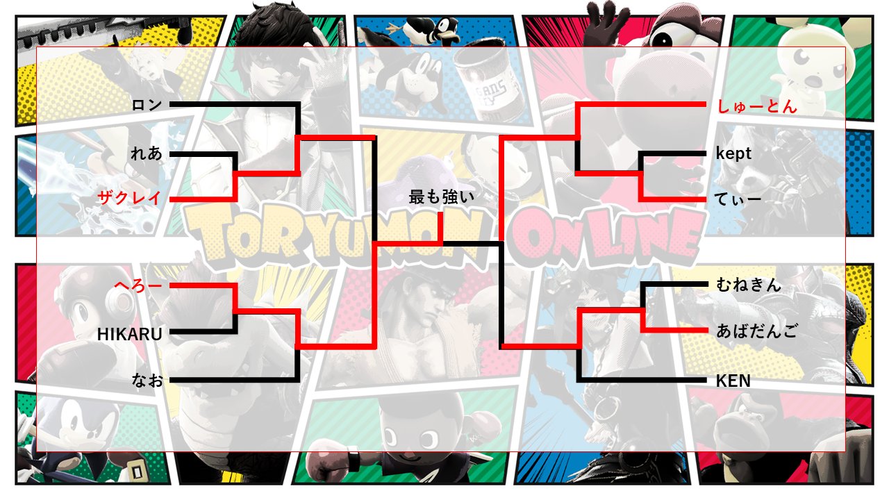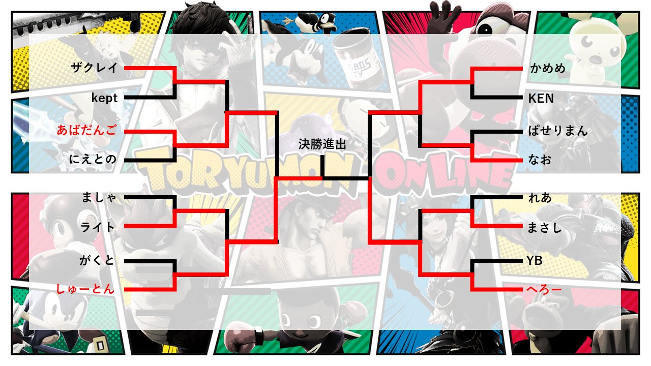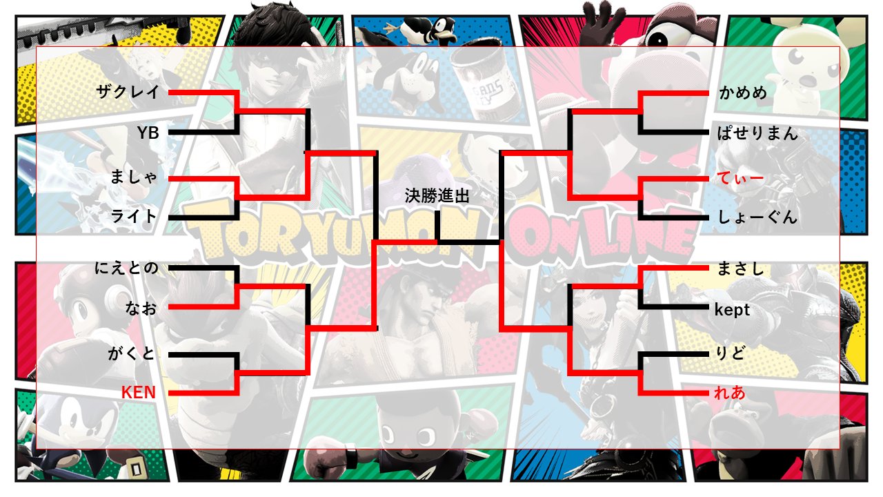 本戦は上記12人によるシングルエリミネーションのトーナメントとなりました。結果は以下の通り。