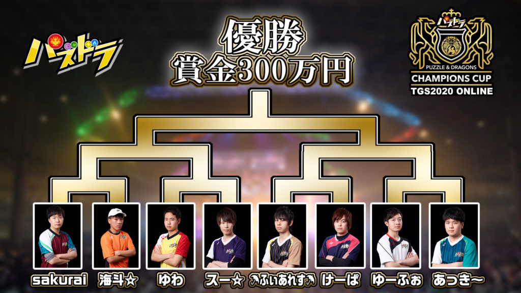 東京ゲームショウONLINEと同時開催となった『パズドラ』の公式大会「パズドラチャンピオンズカップ TGS2020 ONLINE」が26日に終了しました。本大会は13人のプロによって構成される「パズドラプロリーグ SEASON2」の上位6名と、いわゆる「敗者復活」にあたる選考トーナメントにて決定した2名の合計8名による大会となっています。